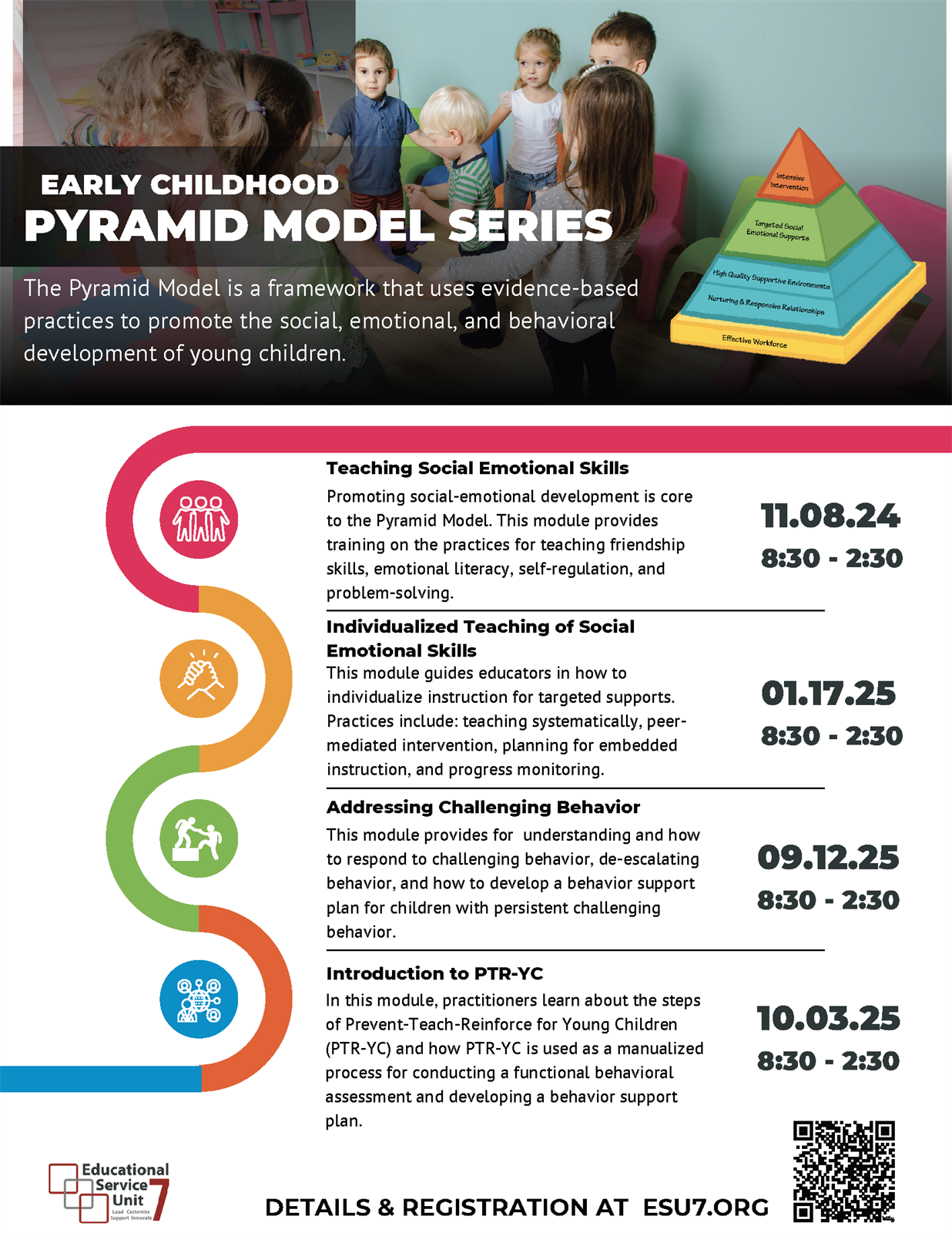 | 0 | Pyramid Model Series: Introduction to PTR-YC | 10/3/2025 8:30:00 AM | | ESU 7 Professional Development | | System.Collections.Generic.List`1[odie.workshops.Facilitator] | | 0.00 |  | odie.workshops.Section |